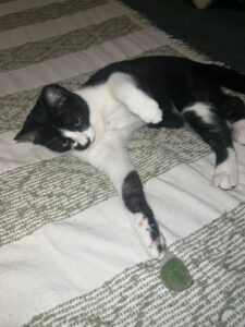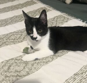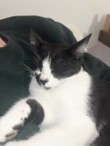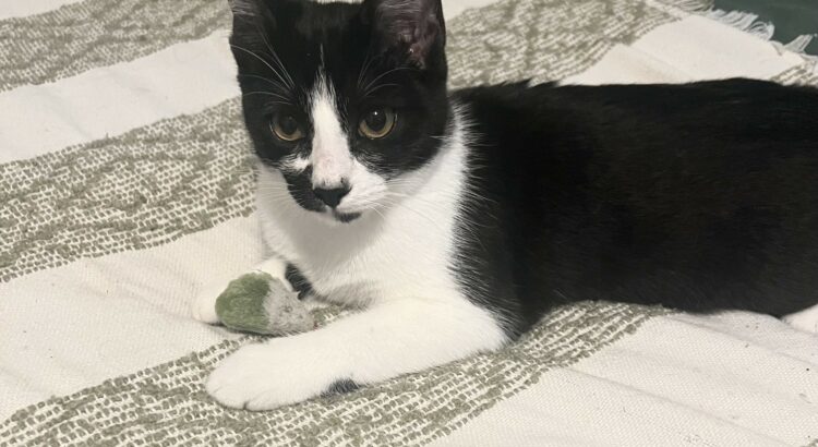 Aimé, femelle, noir et blanche, née le 01/06/2025.