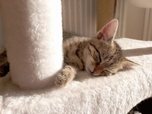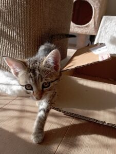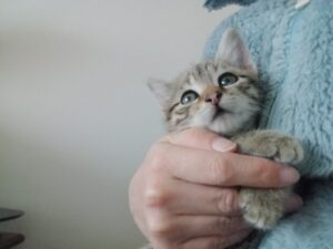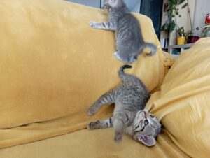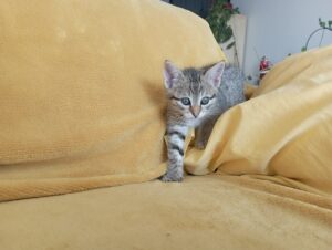 Si vous suivez l’asso sur les réseaux, vous vous souvenez peut-être de mon début de vie difficile… Alors que mes frères et moi n’avions que 4 semaines, nous avons été victimes d’un lâche abandon dans l’espace Comboire. C’était un soir de pluie et tempête. Nos chances de survie étaient bien maigres mais heureusement des personnes ont alerté l’asso. Nous avons été accueillis en famille d’accueil où petit à petit nous avons grandi en compagnie d’autres chats adultes qui ont fait notre éducation.