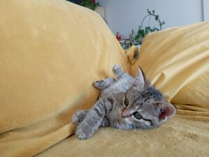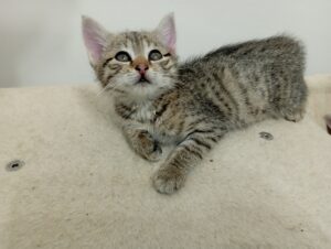 Amande, femelle née le 23/09/2025. Gris tigré.