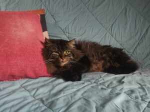 J’ai vécu dehors avant d’être chez ma famille d’accueil actuelle, donc j’ai besoin d’un gros toilettage pour retrouver un beau pelage. Au vu de mes poils longs, j’aurais besoin d’entretien régulier dans ma vie future.