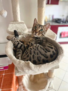 Son foyer idéal : un lieu pensé pour un chat à haut niveau d’énergie, riche en arbres à chat et avec de la présence pour tromper l’ennui (que ce soit chat, humain, grand enfant, voire chien sympa).
