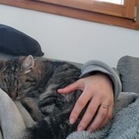 Je commence à apprécier les séances de câlins sur le canapé et dormir avec les humains, j’en ronronne même de plaisir, mais j’ai encore besoin de temps pour que ces habitudes soient pleinement ancrées en moi.