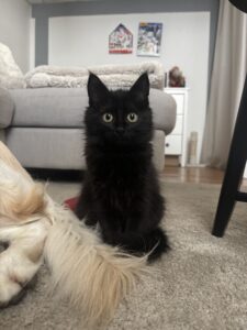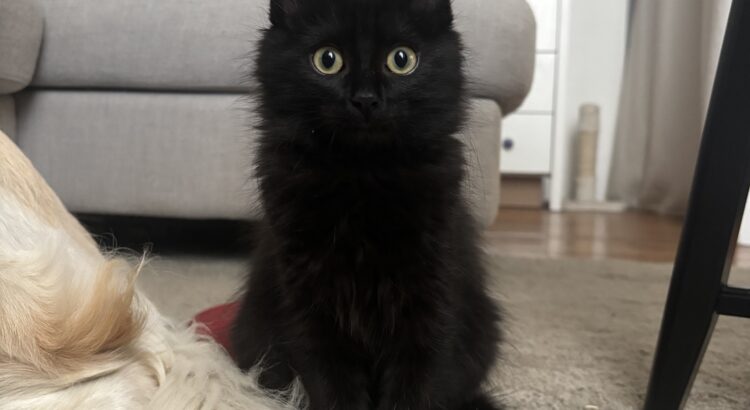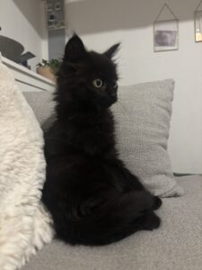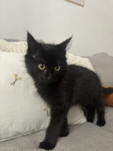 Bruce est un adorable chaton noir au poil long. Il a été récupéré seul dans la rue…