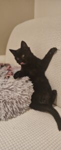 Voici Eliott, adorable chaton 🖤 né le 15/08/25, officiellement détenteur d’un tempérament en or massif (et d’un moteur à ronrons surpuissant).