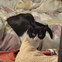 Trouvé dans la rue la nuit du réveillon, c‘est un chat très discret, qui nécessite un environnement calme et sans enfants où il pourra tranquillement prendre ses marques. Eurêka aime se cacher dans des coins bien douillets pour se reposer et ronfler en paix.