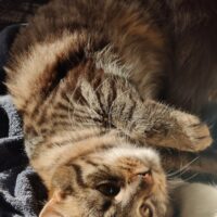 Il apprécie tout de même les caresses et vous gratifiera de ses doux ronronnements. Attention cependant à ne pas abuser de son temps, il vous fera comprendre par un soufflement qu’il est temps de le laisser dormir.