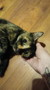 Gipsy est une jeune femelle , écaille de tortue qui est née approximativement autour du 1er octobre 2024. Elle a été trappée avec ses 3 chatons .