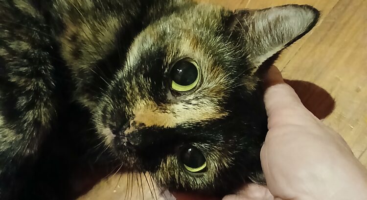 Maintenant qu’elle a confiance, c’est un amour , elle ronronne et vient chercher les câlins . Par contre se méfier, quand on lui donne sa pâtée, ayant sûrement endurée la faim, on peut se prendre quelques coup de pâte. C’est pour ça que je conseille d’éviter les enfants en bas âge .