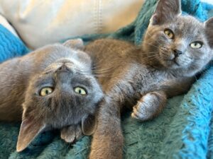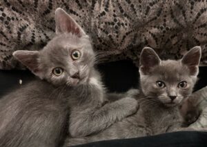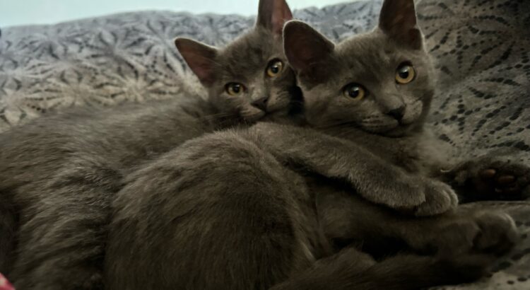 Khéops et Isis, nés aux alentours du 15 Juillet 2025, sont deux magnifiques chatons frère et soeur typés chartreux au doux pelage gris/bleu et aux yeux vert/ambre.