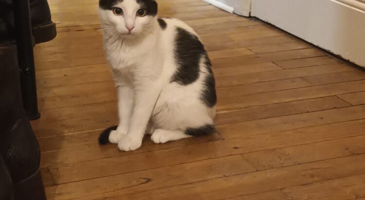 Lumi est une petite chatonne de cinq mois à la robe blanche tachetée de noir. Timide au premier abord, elle a besoin d’un peu de temps pour s’adapter à son nouvel environnement, mais une fois en confiance, elle révèle son côté curieux, joueur et pleine d’énergie !