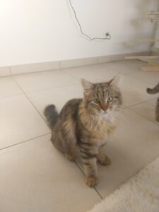 Je dévore la pâtée dès qu’on m’en donne et les caresses sont apprécies à ce moment-là. J’aime beaucoup faire la sieste sur mon arbre a chat, perchée, j’adore également de pouvoir surveiller mon environnement