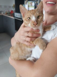 Aujourd’hui, j’apprécie les moments de jeux avec ma famille d’accueil, les séances de câlins sur le canapé, me lover dans les bras de mes humains préférés et dévorer la patée.