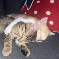 Ninja est une chatonne très dynamique qui se pose que quand elle mange ou dort. Elle joue en permanence avec sa sœur ziggy et avec tout ce qu’elle trouve.