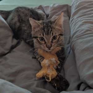 Attention aux griffures involontaires car il a tendance à jouer avec tout ce qui bouge (mains y compris).