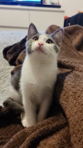 Mais une fois en confiance c’est une vraie machine à ronrons qui aimera se blottir contre vous pour vous faire des léchouilles !