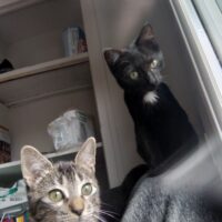Garou est le noir avec une tache blanche sur le torse et le ventre. Amateur de gratouilles aux oreilles en tout genre. Il aime la compagnie et les gratouilles. Toujours derrière son frère quand il s’agit de découvrir de nouveaux lieux. Il n’aime pas la solitude et miaule jusqu’à ce qu’il ne le soit plus.