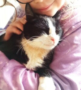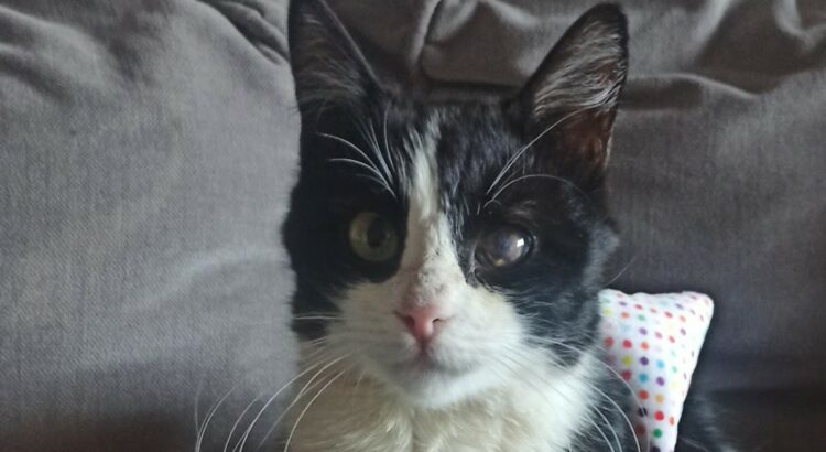 Déjà déterminé, il est arrivé tout seul chez une bénévole de Cosa Animalia avant d’arriver chez sa famille d’accueil et de prendre sa place très rapidement dans le foyer constitué d’un autre chat et d’un enfant.