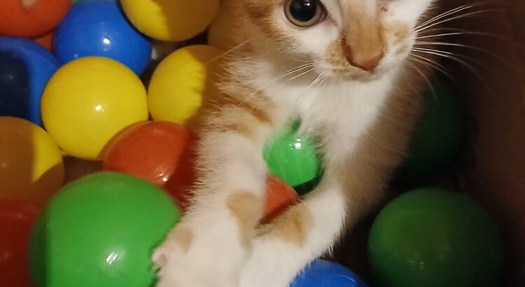 Elle joue avec tout et n’importe quoi, mais reste caline a ses heures.