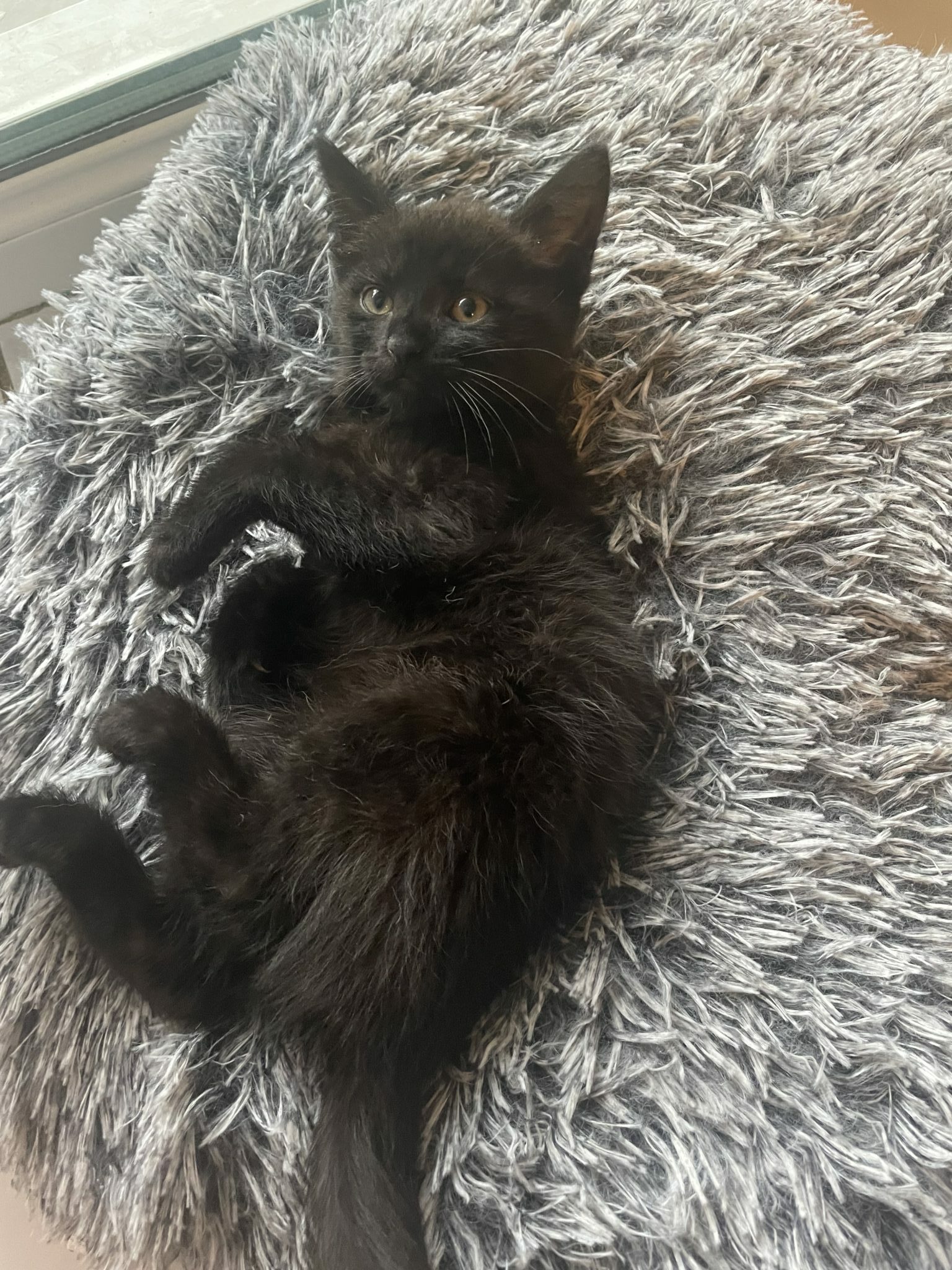 J’ai été trouvé et heureusement mis à l’abri du froid car j’étais tout petit et craintif. Maintenant Je suis un petit chaton qui découvre tout, aime tout voir, joue énormément et avec tous. Du jouet chat à un bouchon, au chouchou cheveux. Tous et un jouer pour moi et j’adore jouer.