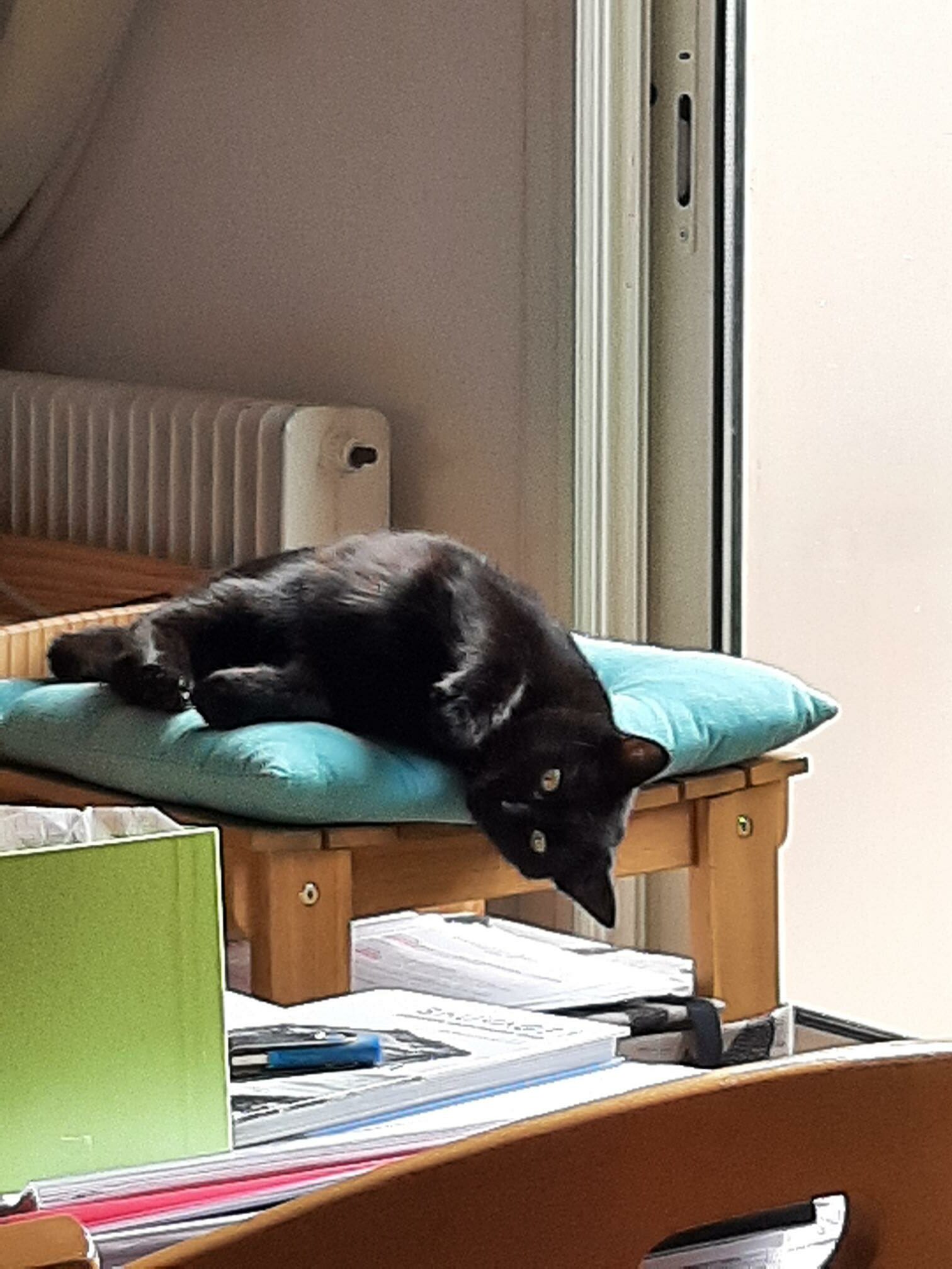 Elle est assez calme, contrairement à pas mal de chats ce n’est pas une « grimpeuse » (en tout cas pour l’instant !).