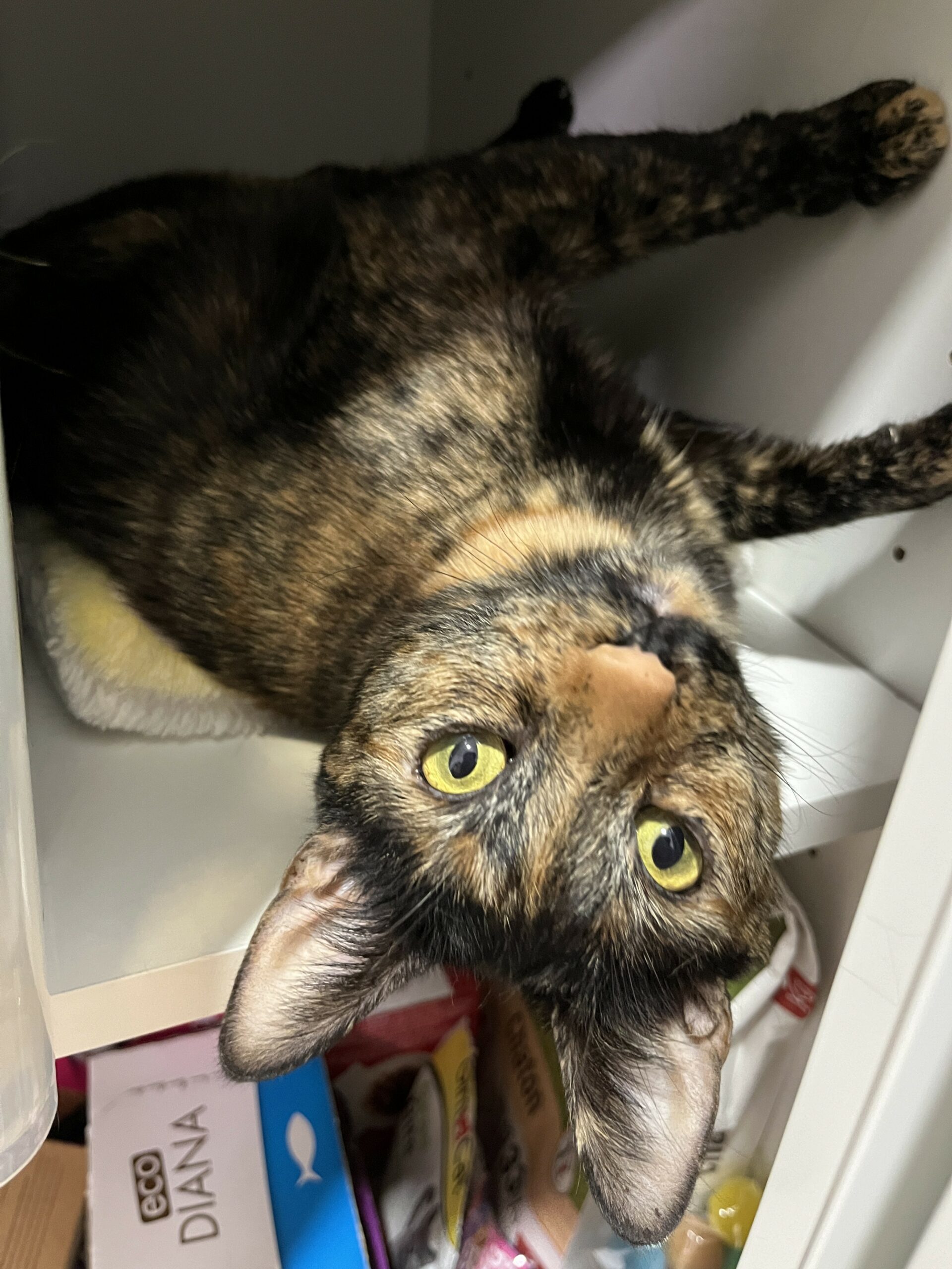 Noumy est une chatte d’un an au pelage écaille Noumy est une chatte d’un an au pelage écaille de tortue.