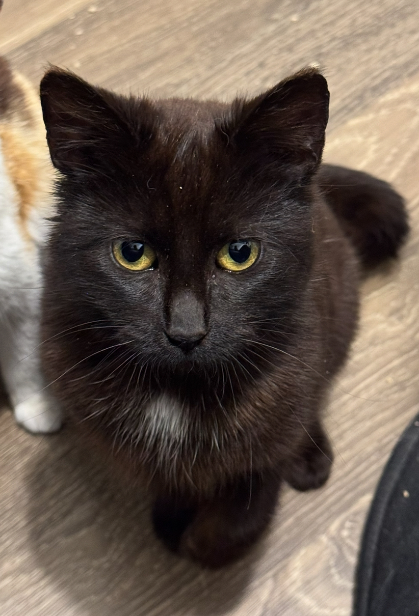 Moka née le 18/07/2024, femelle type européenne toute noire (petite tache blanche au cou)