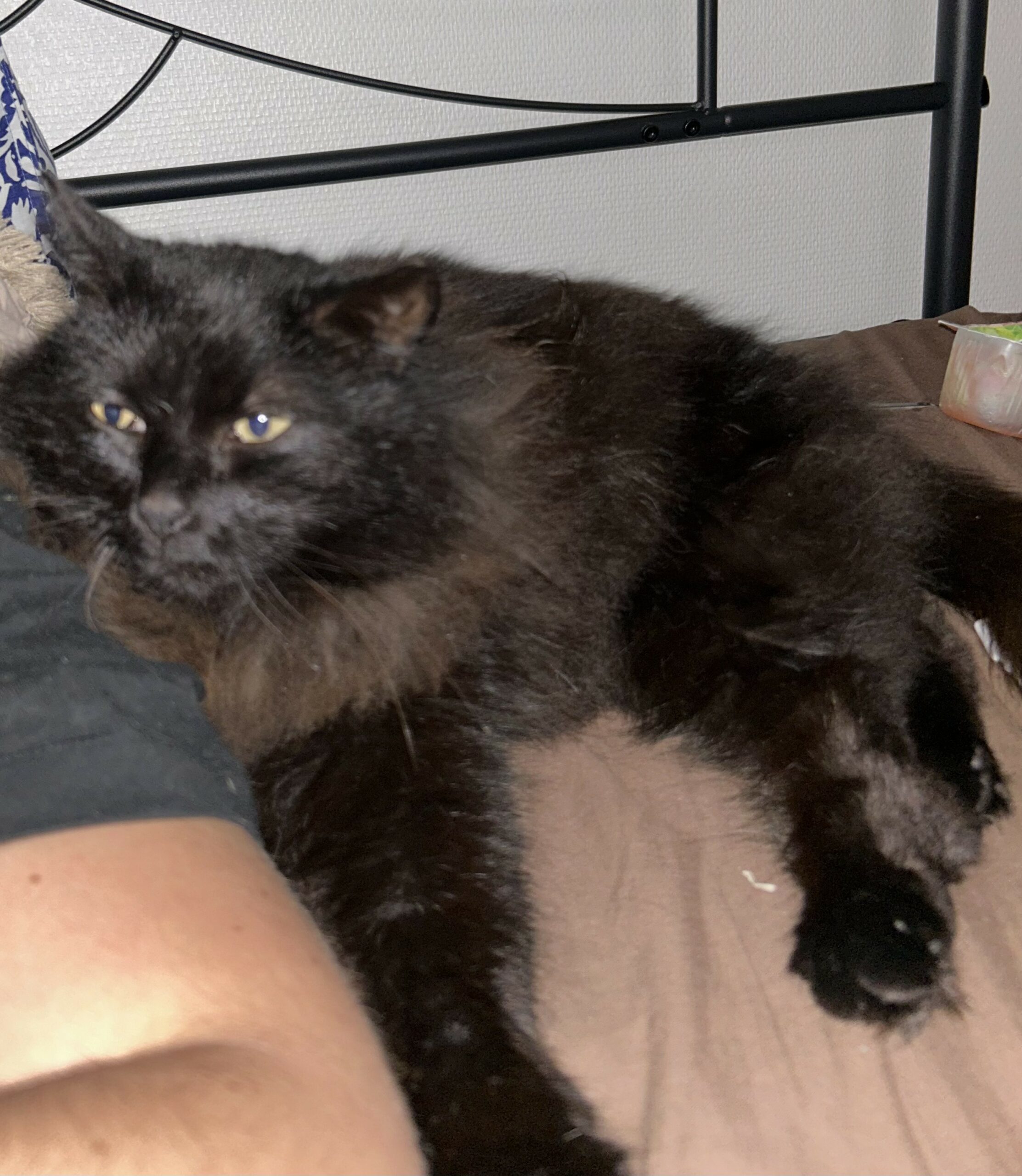 Elle est très câline et elle ronronne beaucoup. Elle est aussi très gourmande c’est la première pour terminer vos pots de yaourt et s’en mettre plein la truffe jusqu’aux oreilles.  Elle vient toujours se réchauffer dans les bras de ses humains.