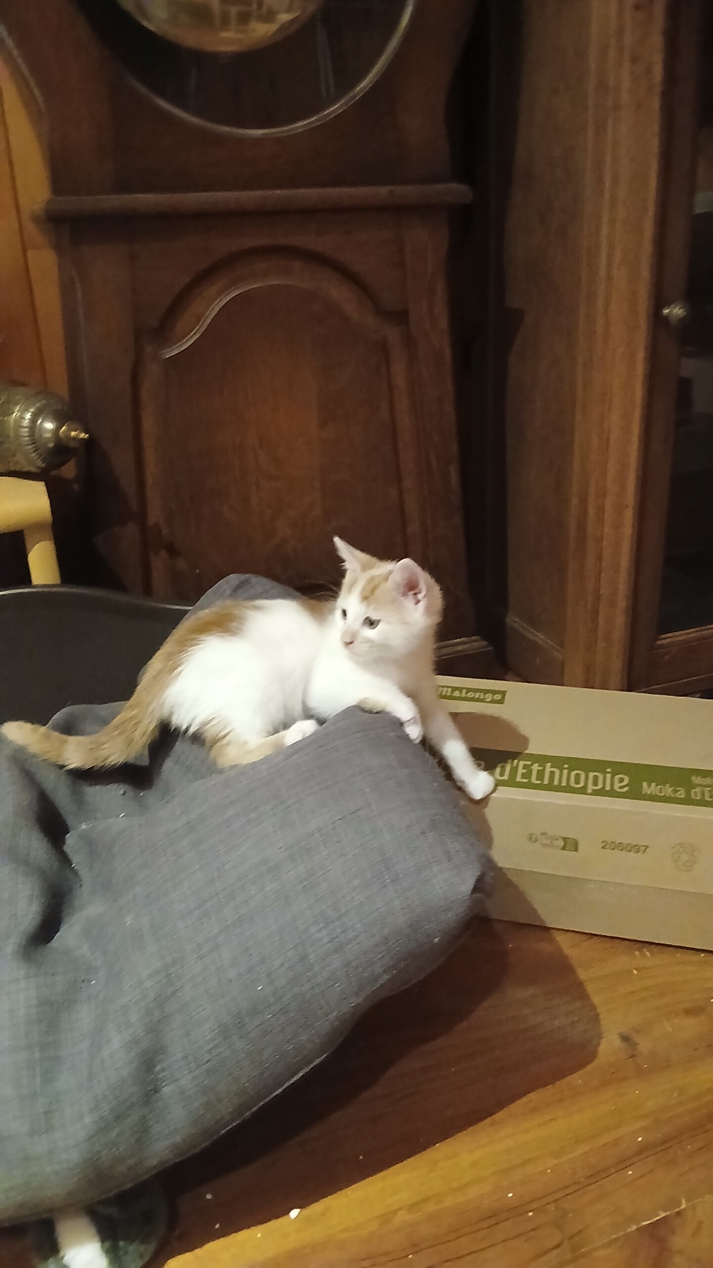 Mise en sécurité rapidement, elle est arrivée toute timide, ne semblant pas connaitre le confort d’une maison. Elle a dormi à même le sol les premiers jours, avant de se rendre compte que le coussin serait plus confortable, et plus longtemps encore avant d’oser monter sur le canapé.