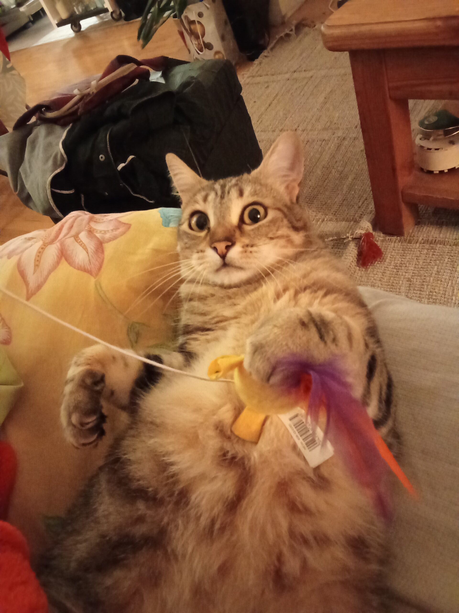Elle aime beaucoup jouer avec ses copains (une famille avec des chats déjà présents est préférable).