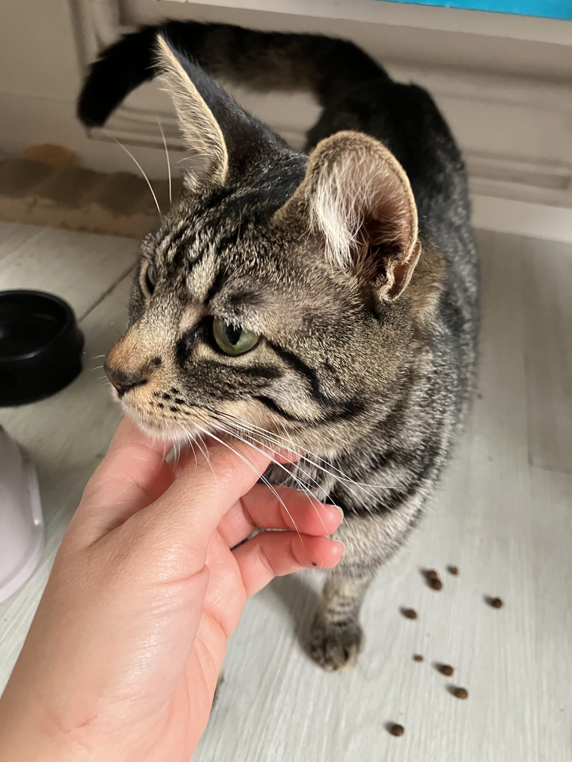 Il a depuis été adopté et mène une vie de câlins et de bonheur avec un copain chat et sa famille d’adoption.