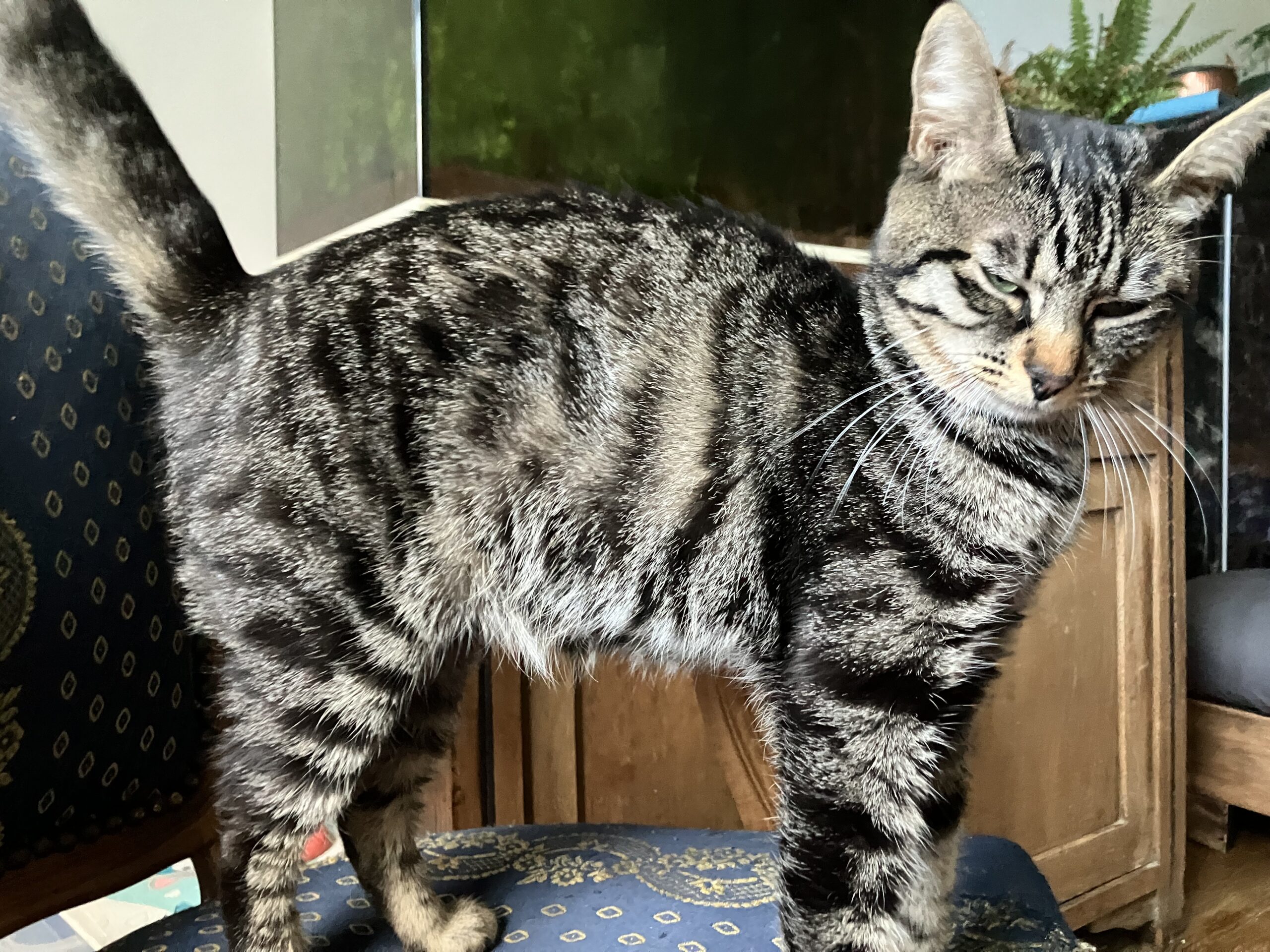 Elle est assez calme, contrairement à pas mal de chats ce n’est pas une « grimpeuse » (en tout cas pour l’instant !).