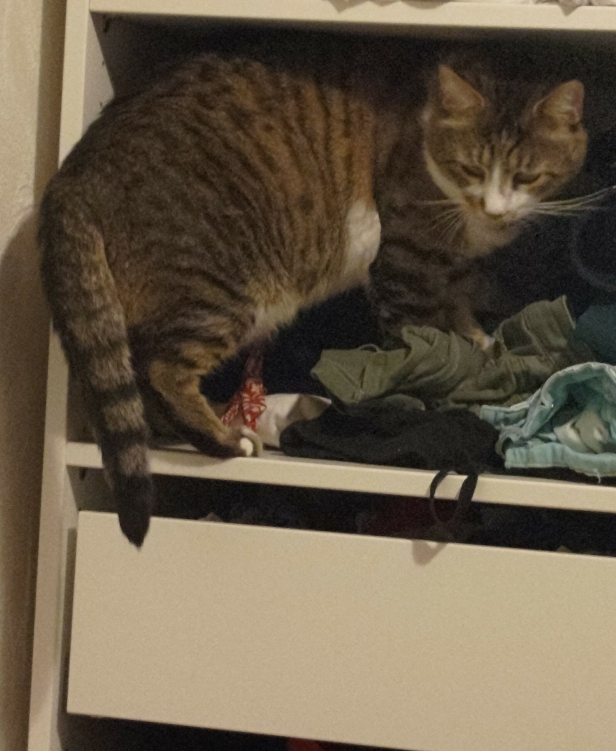 Après une petite semaine « choc » assez stressante pour elle et sa sœur pour s’habituer à la vie en intérieur et au contact répété avec les humains, Nuage a pris confiance en l’homme (et en la vie en appartement !).