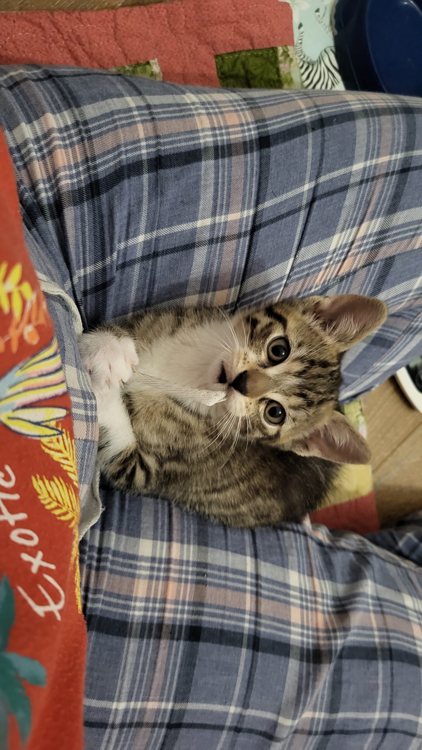 Mise en sécurité rapidement, elle est arrivée toute timide, ne semblant pas connaitre le confort d’une maison. Elle a dormi à même le sol les premiers jours, avant de se rendre compte que le coussin serait plus confortable, et plus longtemps encore avant d’oser monter sur le canapé.