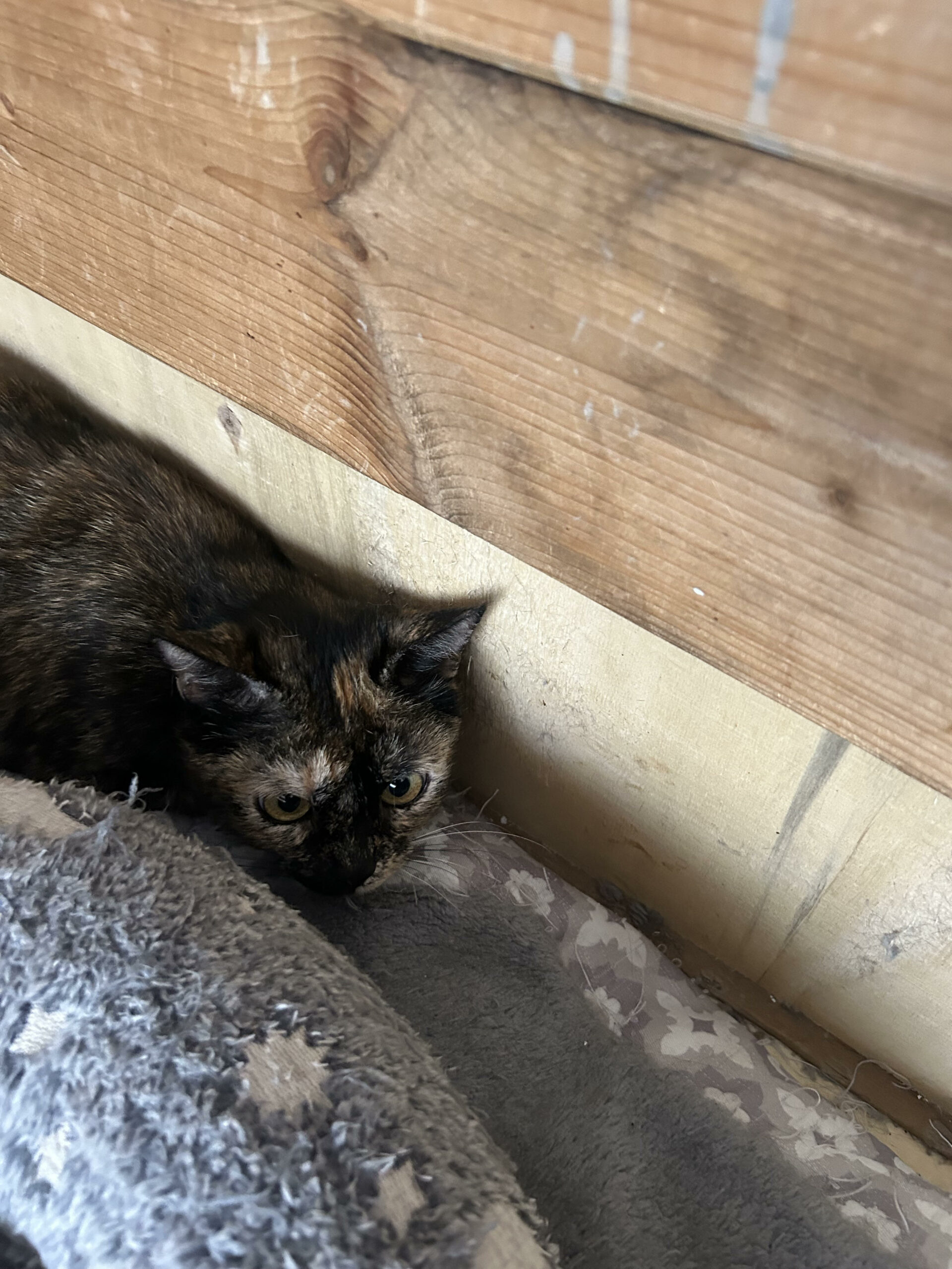 Gipsy est une jeune femelle , écaille de tortue qui est née  approximativement  autour du 1er octobre 2024. Elle a été trappée avec ses 3 chatons .