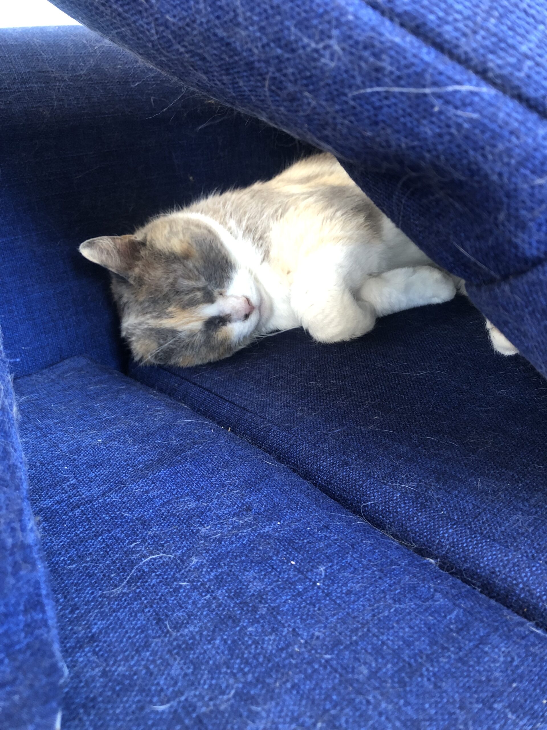 Après une petite semaine « choc » assez stressante pour elle et sa sœur pour s’habituer à la vie en intérieur et au contact répété avec les humains, Nuage a pris confiance en l’homme (et en la vie en appartement !).
