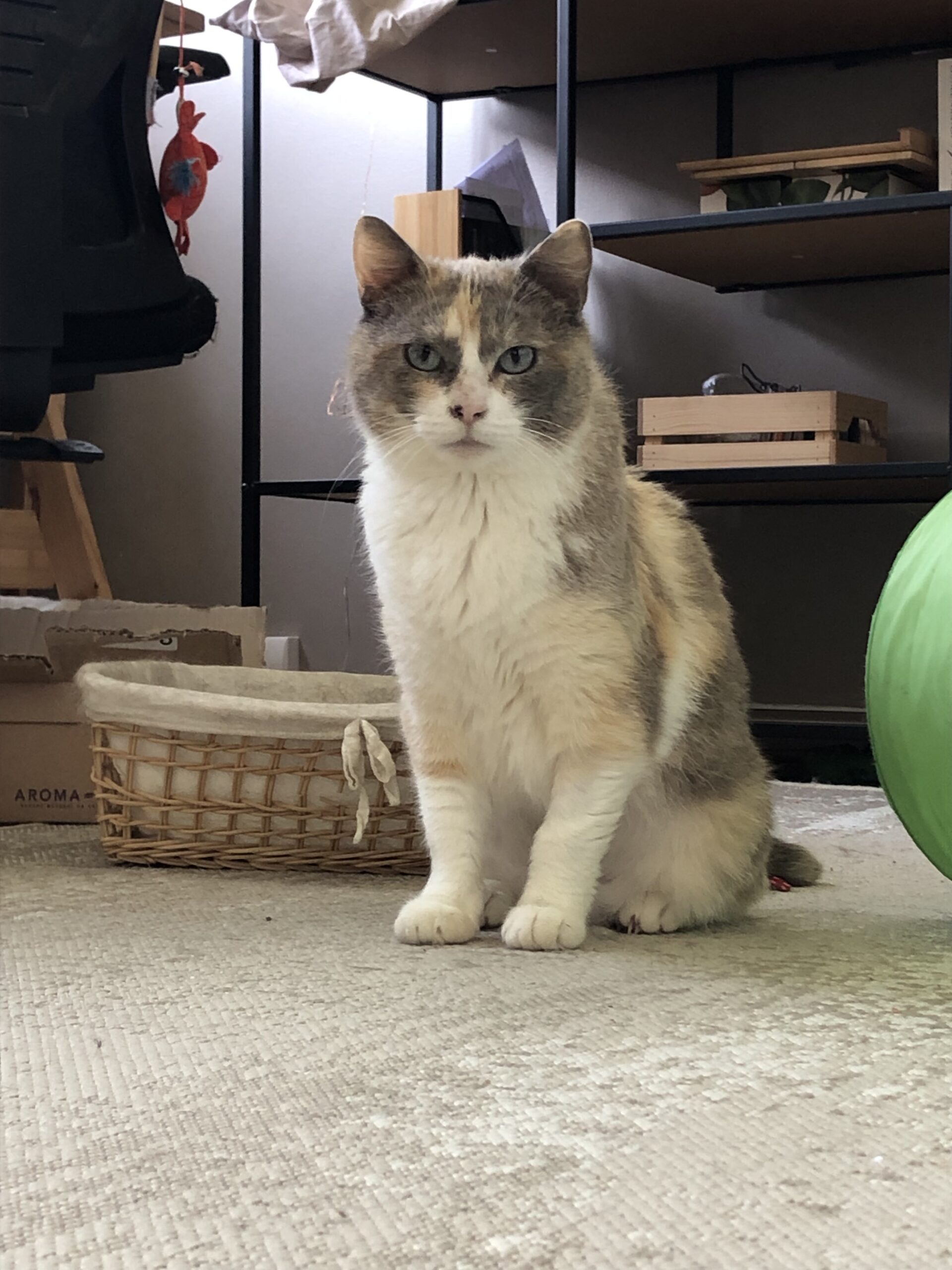 Mise en sécurité rapidement, elle est arrivée toute timide, ne semblant pas connaitre le confort d’une maison. Elle a dormi à même le sol les premiers jours, avant de se rendre compte que le coussin serait plus confortable, et plus longtemps encore avant d’oser monter sur le canapé.