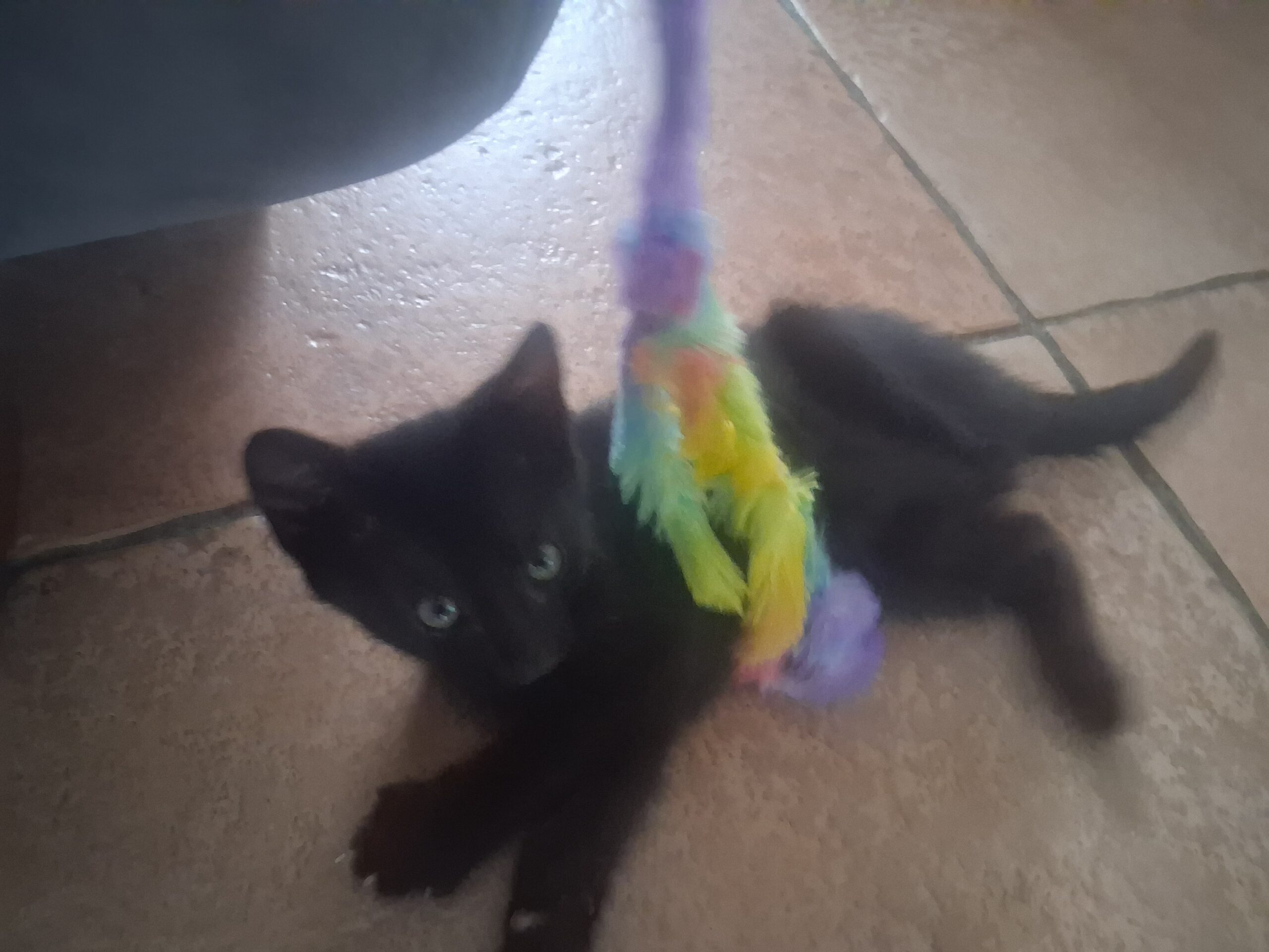 Elle aime beaucoup jouer avec ses copains (une famille avec des chats déjà présents est préférable).