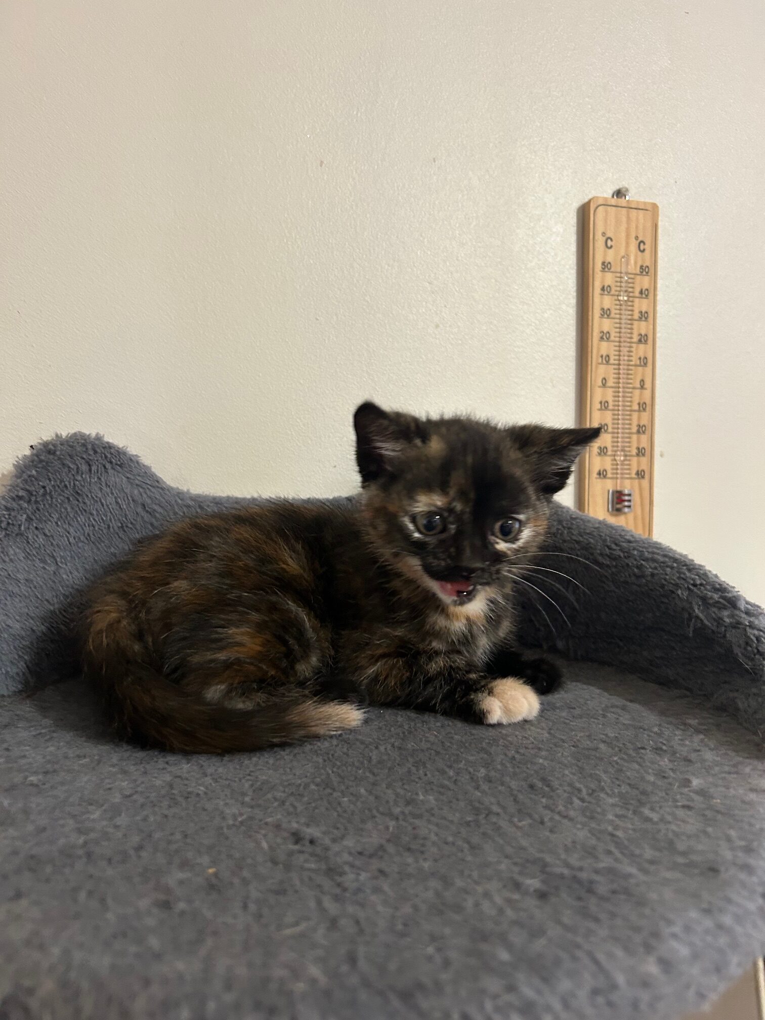 Gipsy est une jeune femelle , écaille de tortue qui est née  approximativement  autour du 1er octobre 2024. Elle a été trappée avec ses 3 chatons .