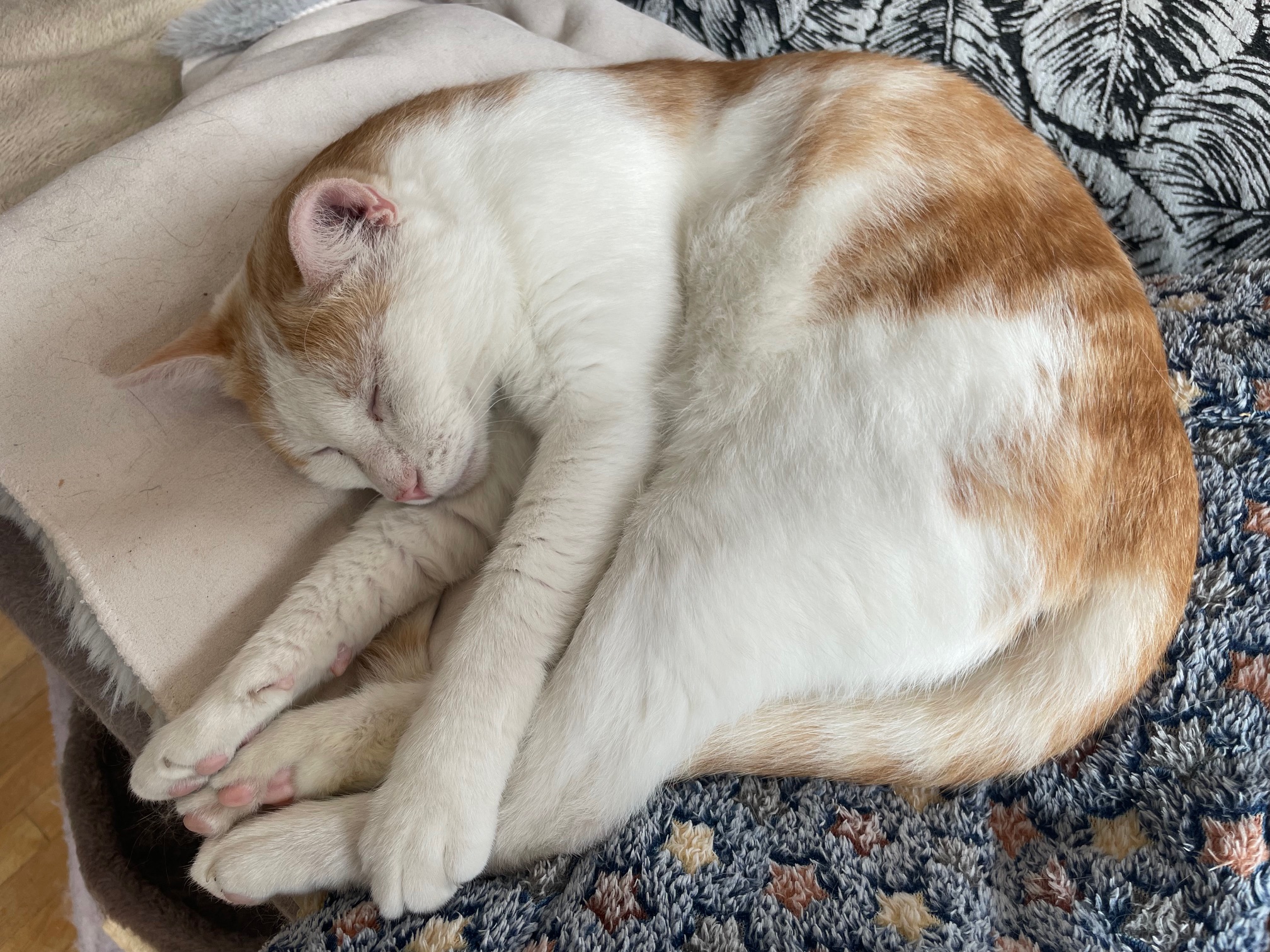 Il a depuis été adopté et mène une vie de câlins et de bonheur avec un copain chat et sa famille d’adoption.