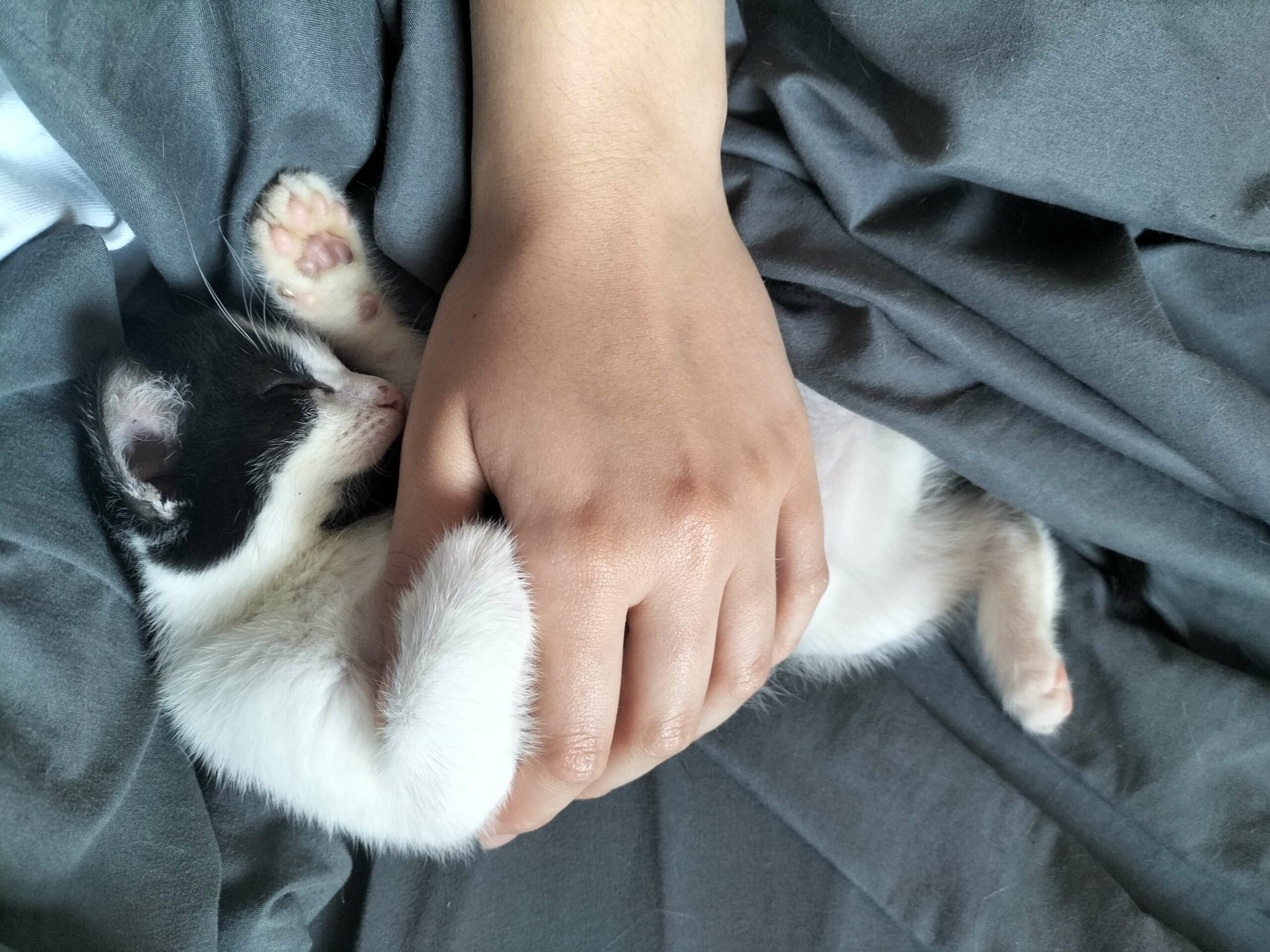 Il a depuis été adopté et mène une vie de câlins et de bonheur avec un copain chat et sa famille d’adoption.