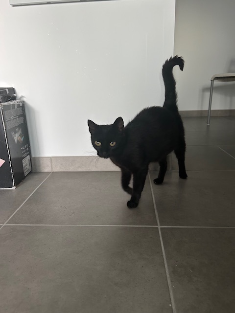 Mise en sécurité rapidement, elle est arrivée toute timide, ne semblant pas connaitre le confort d’une maison. Elle a dormi à même le sol les premiers jours, avant de se rendre compte que le coussin serait plus confortable, et plus longtemps encore avant d’oser monter sur le canapé.
