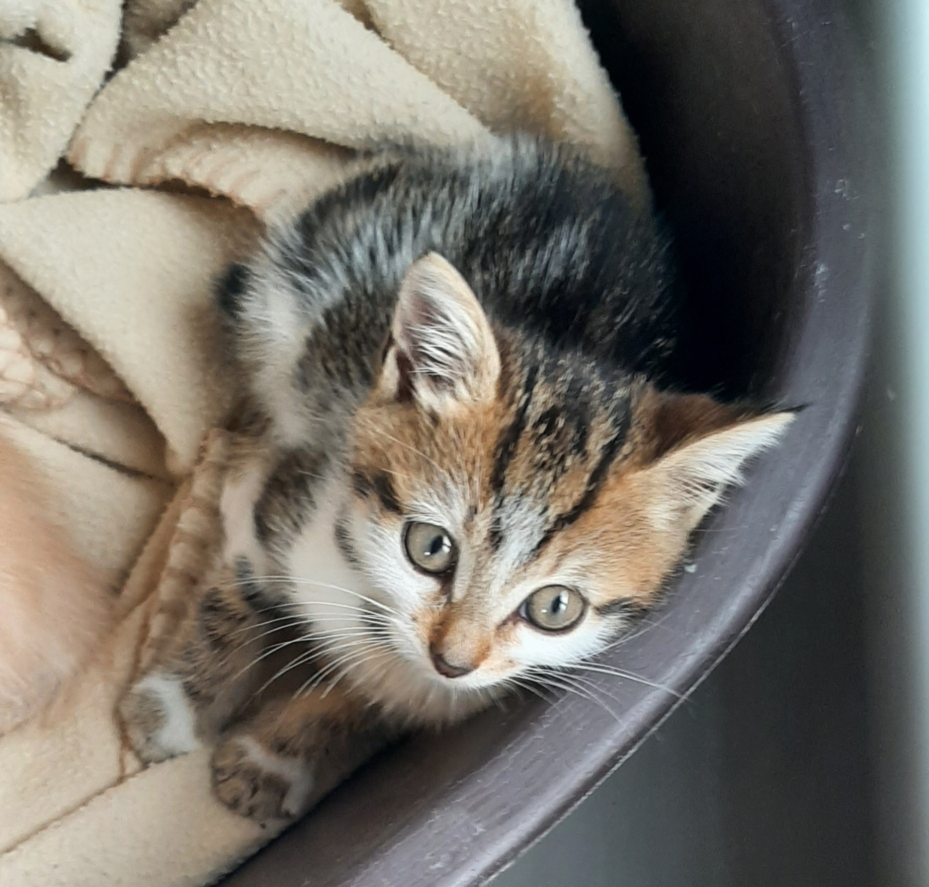 Gipsy est une jeune femelle , écaille de tortue qui est née  approximativement  autour du 1er octobre 2024. Elle a été trappée avec ses 3 chatons .