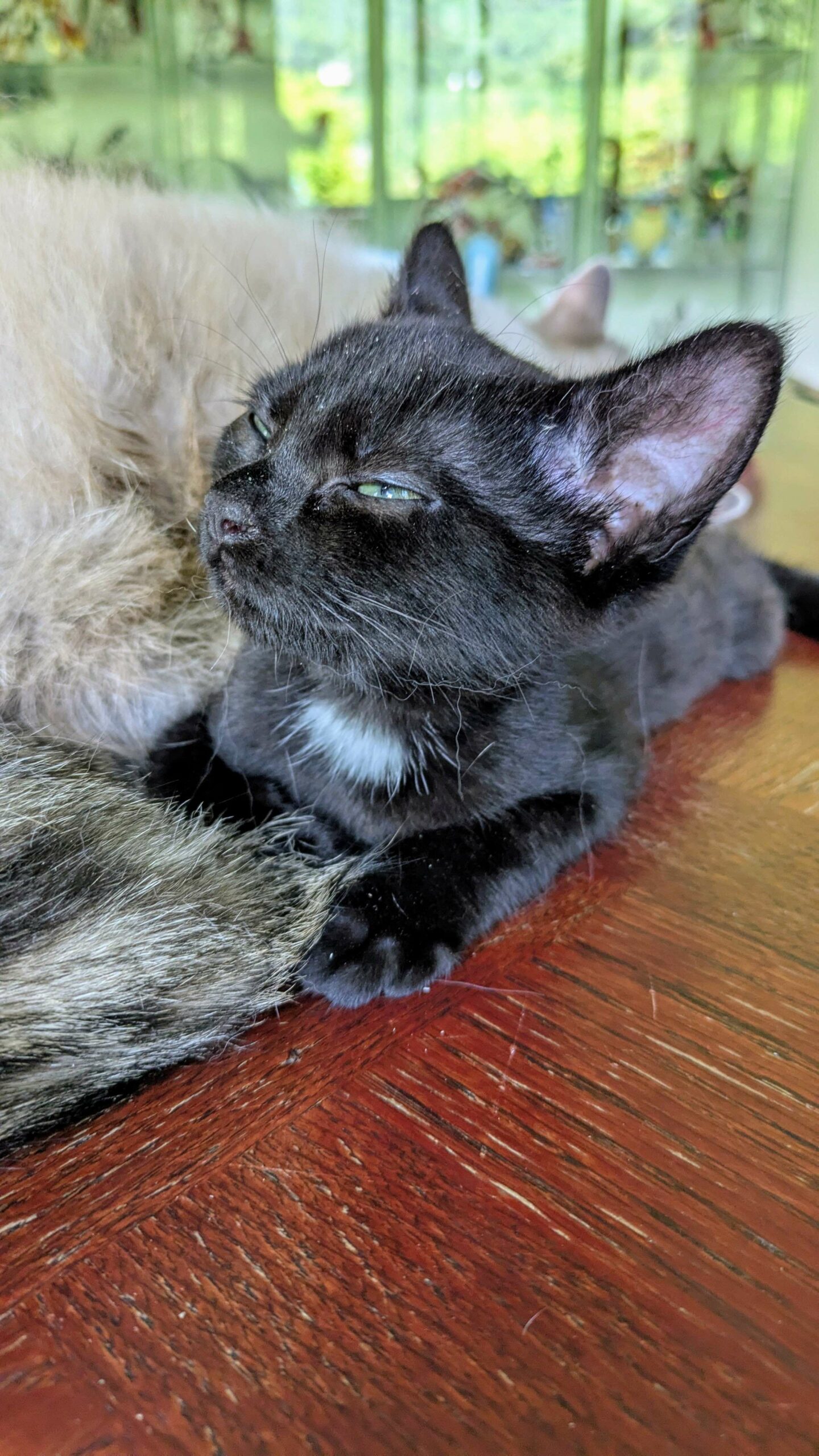 Il a depuis été adopté et mène une vie de câlins et de bonheur avec un copain chat et sa famille d’adoption.