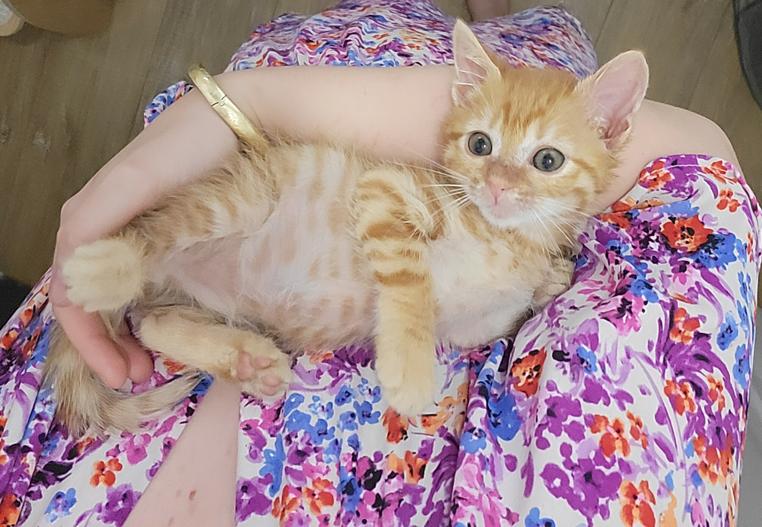 Il a depuis été adopté et mène une vie de câlins et de bonheur avec un copain chat et sa famille d’adoption.