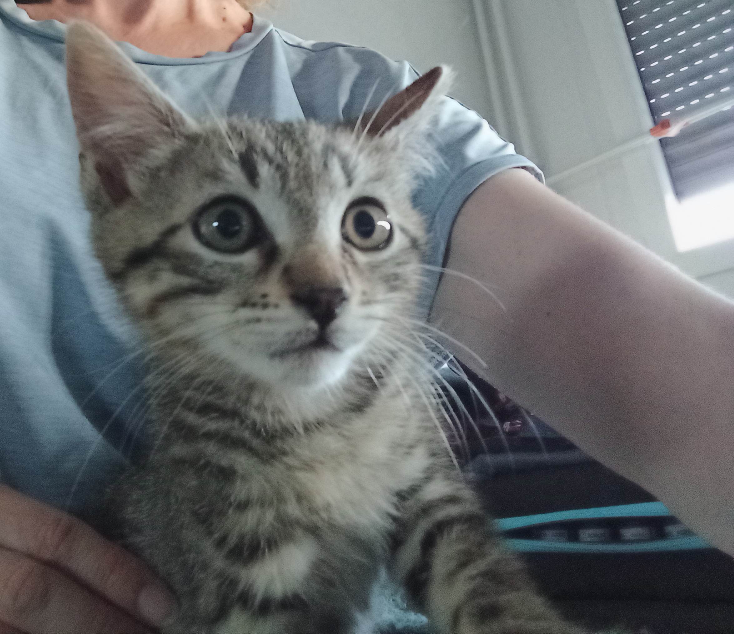 Il a depuis été adopté et mène une vie de câlins et de bonheur avec un copain chat et sa famille d’adoption.