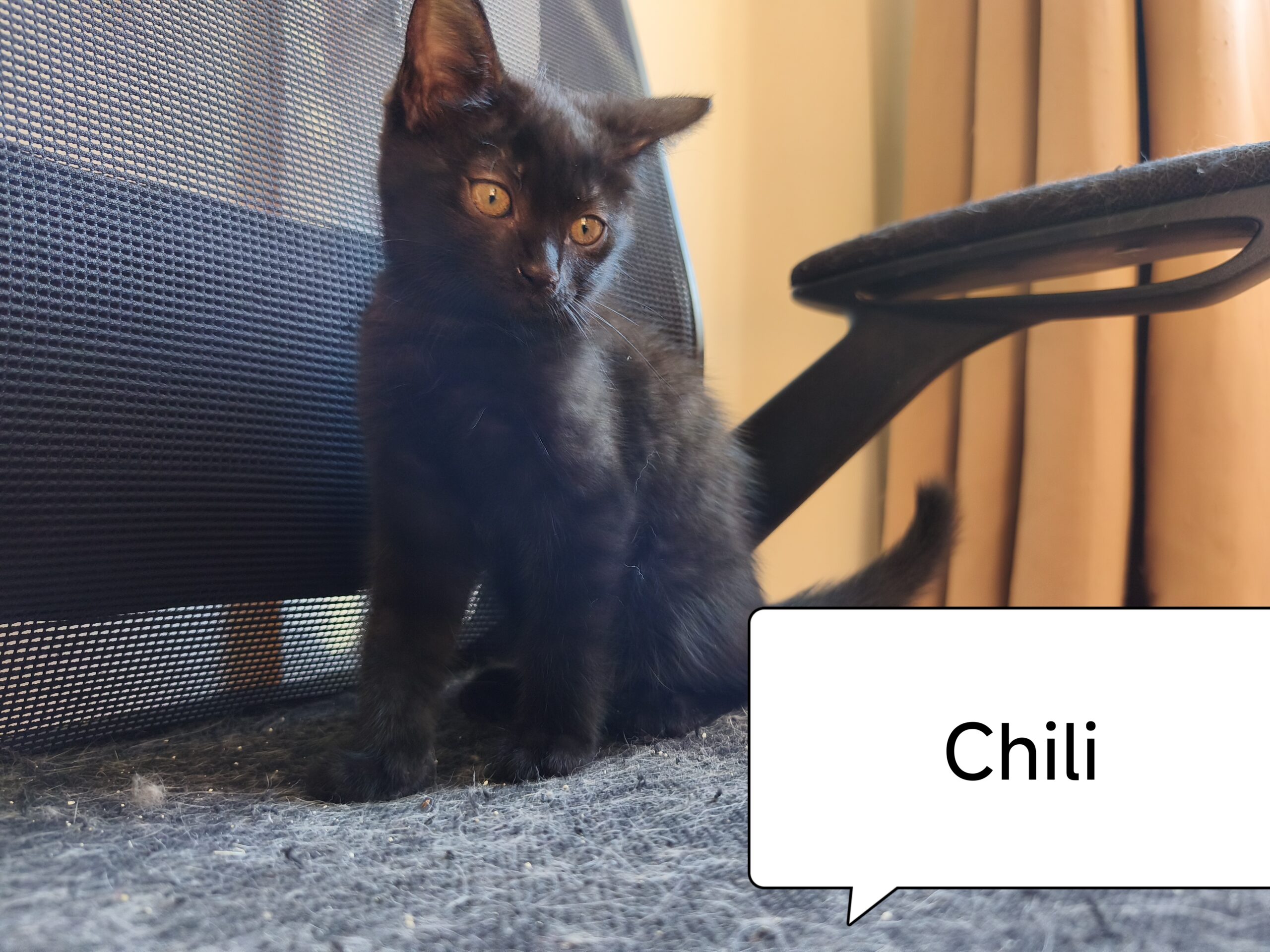 Mise en sécurité rapidement, elle est arrivée toute timide, ne semblant pas connaitre le confort d’une maison. Elle a dormi à même le sol les premiers jours, avant de se rendre compte que le coussin serait plus confortable, et plus longtemps encore avant d’oser monter sur le canapé.