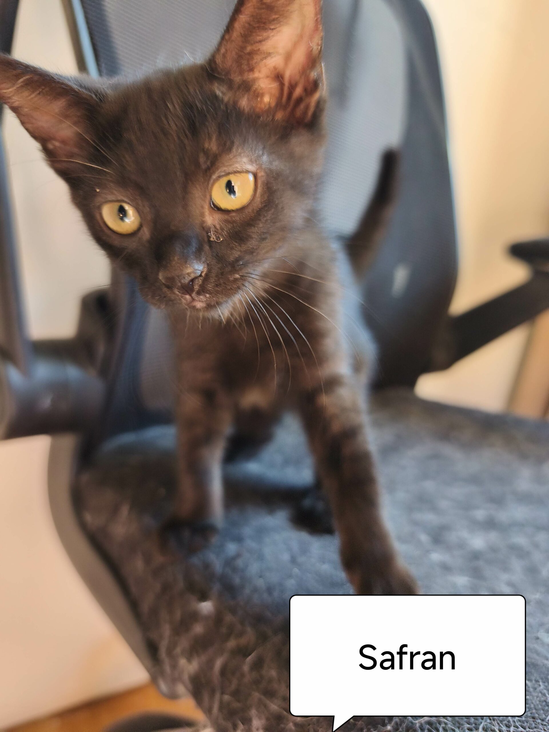Gipsy est une jeune femelle , écaille de tortue qui est née  approximativement  autour du 1er octobre 2024. Elle a été trappée avec ses 3 chatons .
