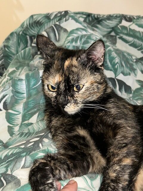 Gipsy est une jeune femelle , écaille de tortue qui est née  approximativement  autour du 1er octobre 2024. Elle a été trappée avec ses 3 chatons .