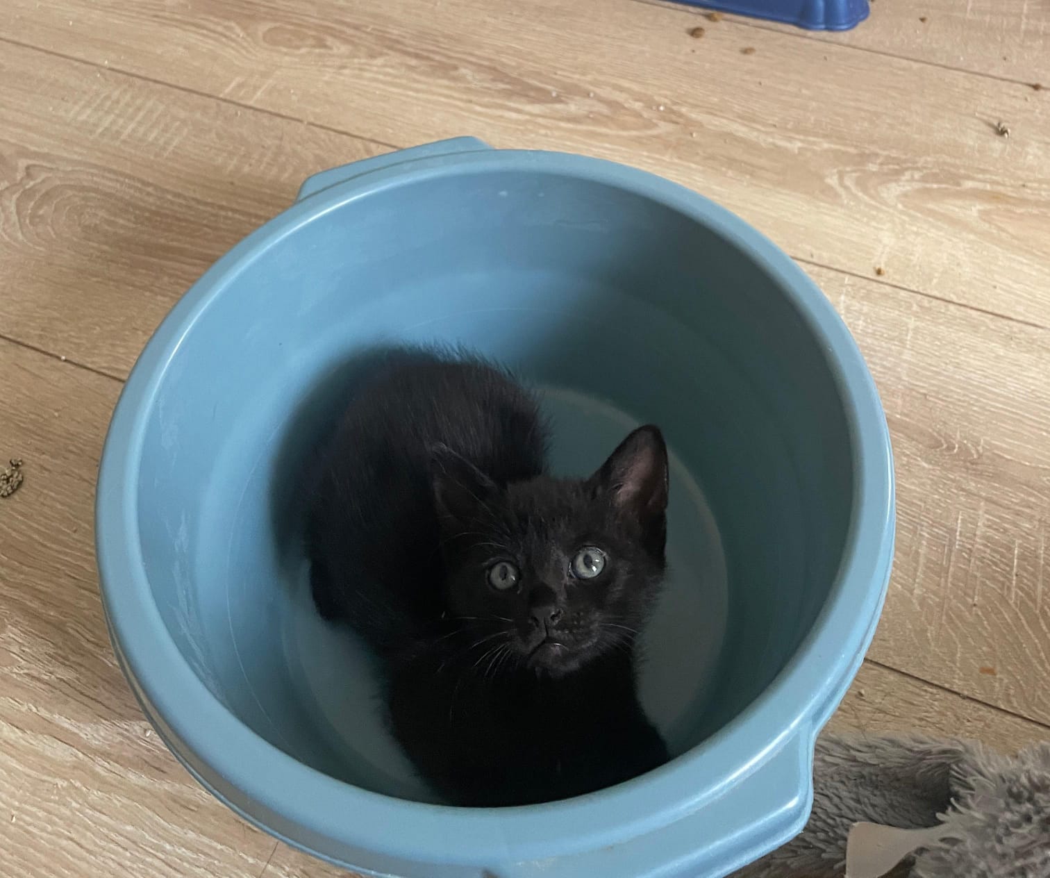 Mise en sécurité rapidement, elle est arrivée toute timide, ne semblant pas connaitre le confort d’une maison. Elle a dormi à même le sol les premiers jours, avant de se rendre compte que le coussin serait plus confortable, et plus longtemps encore avant d’oser monter sur le canapé.