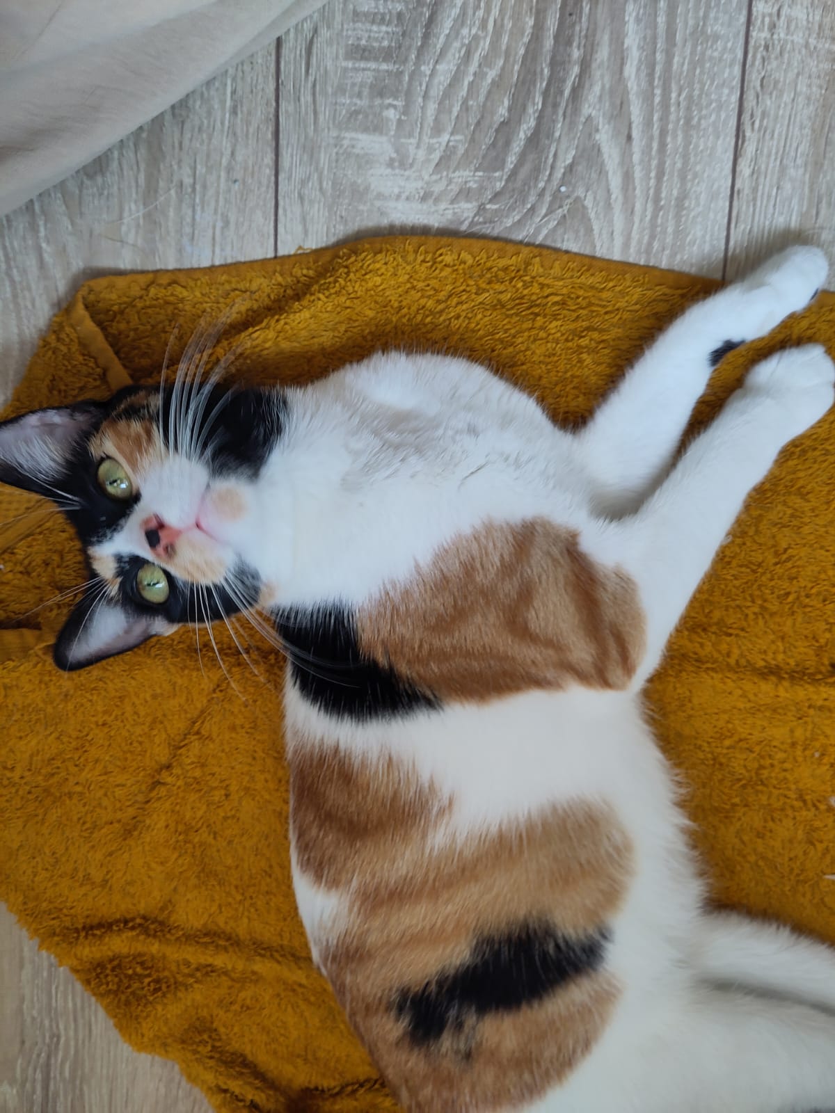 Très jolie frimousse, très peureuse (au début), très câline après, Sheba n’aime pas rester dans un coin seule.